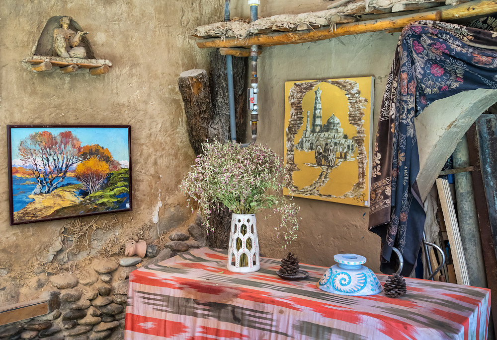 — Бу бино 1953 йилда қуриб битказилган. Уни хом ғиштдан кўтаришган. Ўтган асрнинг тўқсонинчи йилларида уйда қаҳвахона ташкил этиш учун турклар уни ижарага олиб, миллий услубда жиҳозлашган ва натижада бино Ҳива ёки Бухоро уйига ўхшаб қолган. Кейин иншоот маҳаллий ресторанчилар қўлига ўтган ва муайян вақт давомида унда умумий овқатланиш муассасаларининг бештаси фаолият юритган. Уч йил олдин мен бу бинони ижарага олиб, бу ерда Human House галереясини ташкил этдим. Биз бинонинг эски кўринишини қайта тикладик, цемент сувоқларни йўқотиб, сомон сувоқли деворларни қайтардик. Объектни реклама қилиш бўйича катта ишларни амалга оширдик, туристларни жалб этиш учун уни турли йўлномаларга киритдик. Ва натижада саёҳатчилар ҳам бу ерга кўп келиб турадиган бўлиб қолганлари рост.