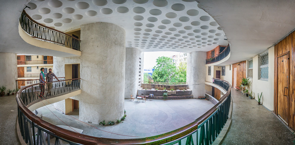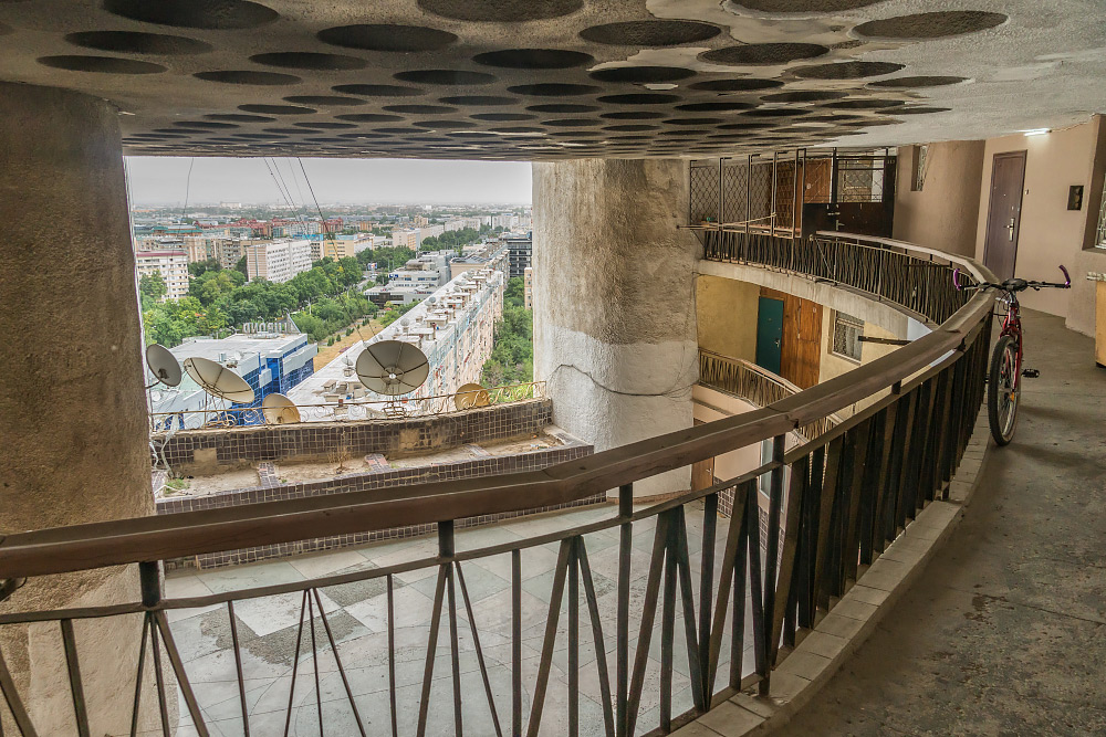 «Жемчуг»нинг бошқа яна бир диққатга сазовор жойи — унинг том қисмидаги майдончадир. У ерда солярий ва болалар учун катта бўлмаган ҳовуз ўрнатилган. 12 та вентиляция трубалари қуёшдан яширинишга имкон беради. Бинонинг том қисми лойиҳа муаллифларининг уйсозликдаги модерн услубига қўл урганлари кўрсатади ва Марселдаги Ле Корбюзье биносини ёдга солади. Ўша-ўша ҳовуз, солярий ва трубаларнинг ҳайкалсифат формалари…
