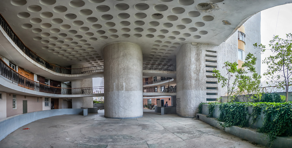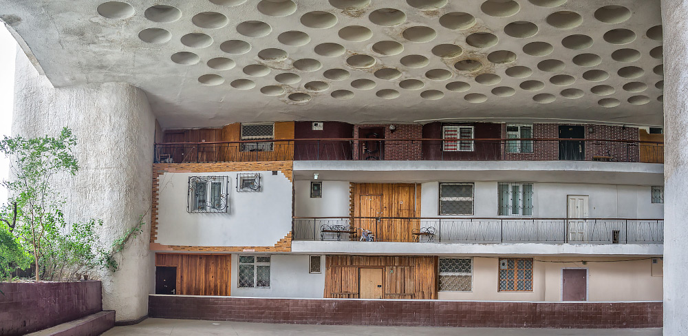 «Жемчуг» биносида ўша замон турар-жой архитектурасига хос кўпгина новаторлик ғоялари ўз аксини топганди— уйдаги ойналар горизонтал равишда очиларди, ҳар бир хонадоннинг айлана бурчаги бор эди ва урда махсус мебаль ўрнатилганди. Хонадон соҳибларининг барчасига ҳам бу ғоялар ёқмас ва айримлар ўз таъабидан келиб чиқиб, яшаш жойига ўзгартиришлар киритганлар. Шунга қарамасдан, «Жемчуг» ўзига хос кўринишини сақлаб қолди ва ҳамон турли ўлкалардан замонавий архитектура иштиёқмандларини жалб қилиб келмоқда.