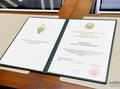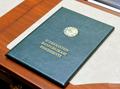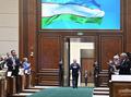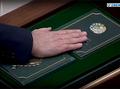 Президент қасамёд қабул қилганидан сўнг унга президент белгиси ва штандарти топширилди.