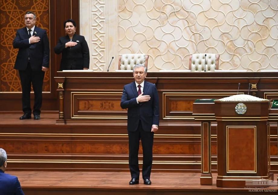 Шавкат Мирзиёев иккинчи бор президент лавозимини эгаллади. У Конституция ва Қуръони Каримга қўлини қўйган ҳолда қасамёд қилди.