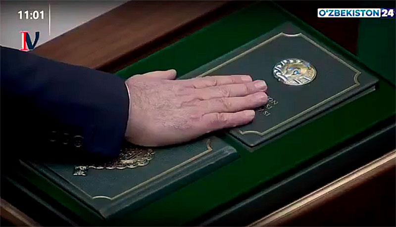 Шавкат Мирзиёев иккинчи бор президент лавозимини эгаллади. У Конституция ва Қуръони Каримга қўлини қўйган ҳолда қасамёд қилди.