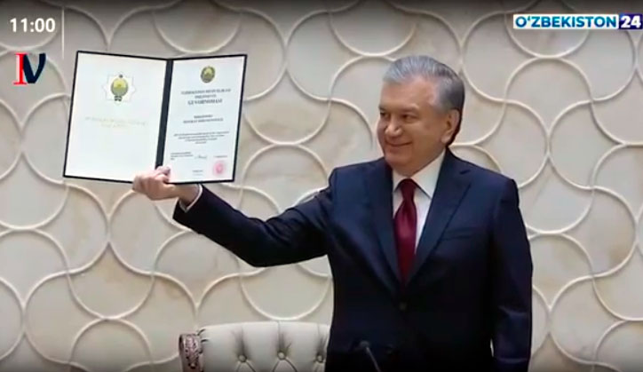 Ўзбекистон Сенатининг янги биносида 6 ноябрь куни Ўзбекистон Республикаси Президентининг ўз лавозимига киришишига бағишланган тантанали маросим бўлиб ўтди. Маълумки, 24 октябрда бўлиб ўтган Президент сайловида Шавкат Мирзиёев сайловчиларнинг 80,12% овозини қўлга киритиб, ғолиб бўлганди.