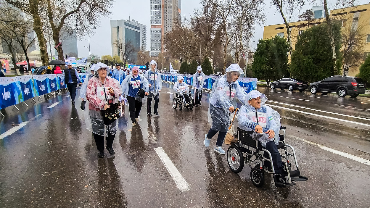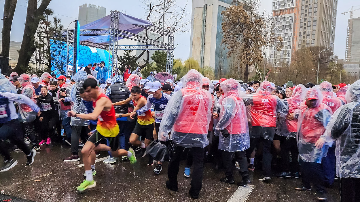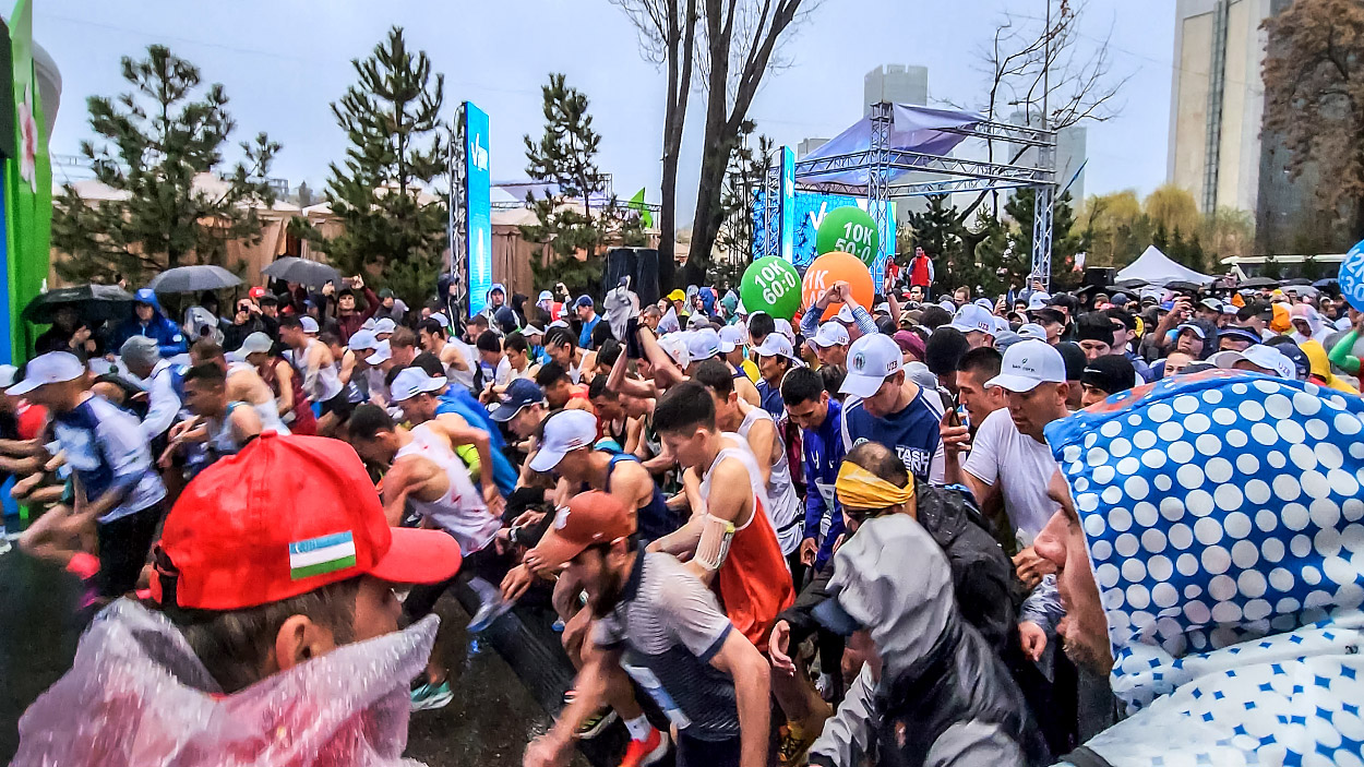 Старт эрталаб соат 8 да Афросиёб ва Бешағоч кўчалари чорраҳасида Humo Arena муз саройи яқинида бўлиб ўтди. Марафон иштирокчилари спорт байроқлари ва баннерларни ерга қулатолган кучли ёмғир ва кучли шамолдан қўрқмадилар. Ҳаммани узоқ кутилган баҳор илиқлиги илҳомлантирарди, ҳаво ҳарорати +19 даража эди.