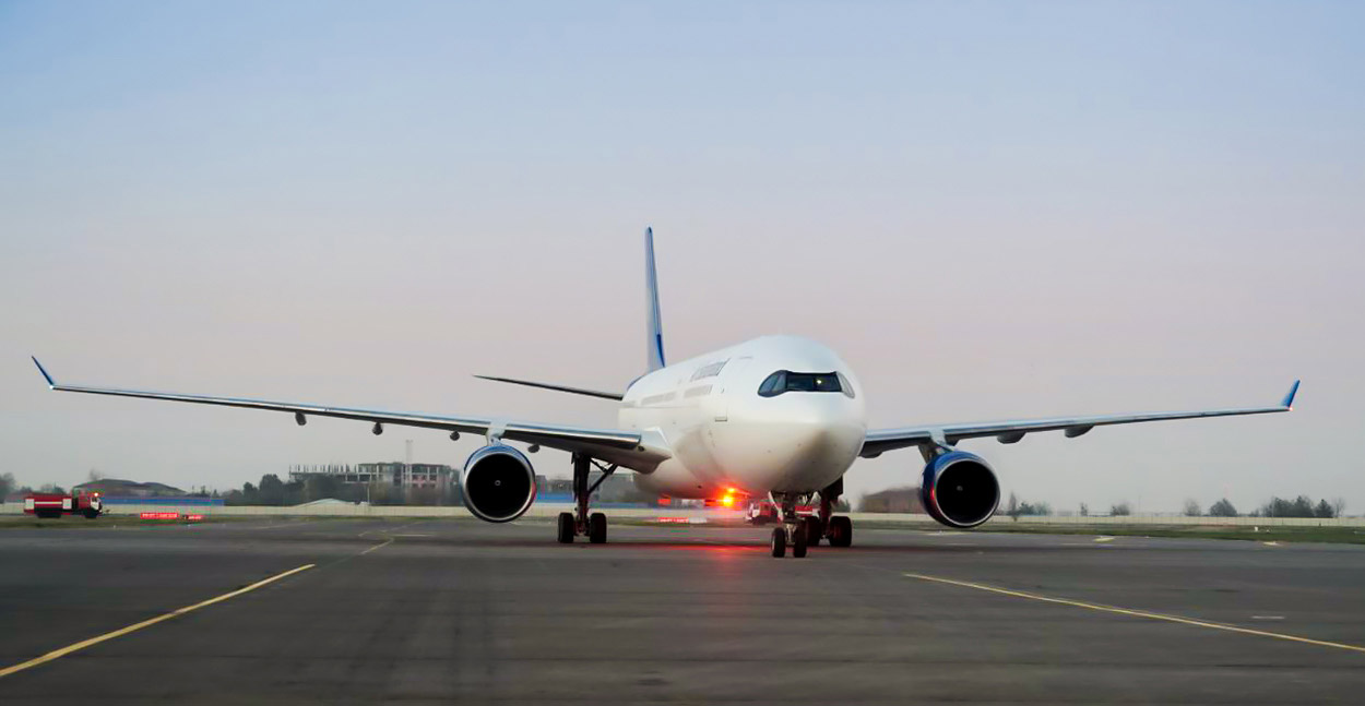 Самарқандга Airbus A330-300 самолётининг учиб келиши. Андрей Кудряшов фотосурати/ «Фарғона»