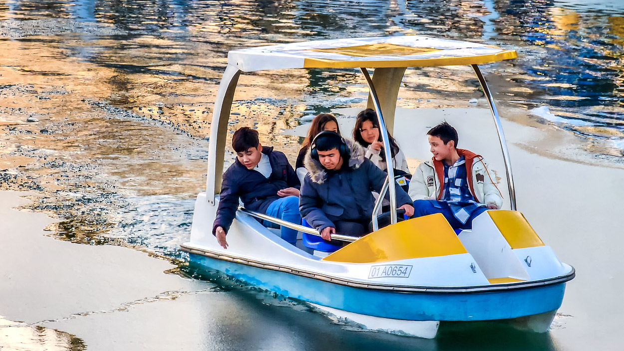 Дастлаб кўлда қайиқда сузиш мумкин, сўнгра қайиқ станциясининг рўпарасида, қирғоқда жойлашган муз майдончасида конки учиш мумкин ёки бунинг аксини қилиш мумкин.