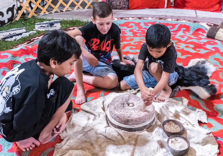 «Мовий гумбазлар» боғидаги «Қирғиз қишлоғи»га ташриф буюрувчиларнинг чеки кўринмасди. Ёзги жазирамада асосий тадбирлар қуёш ботганидан сўнг бошланди. Бутун экспозиция яхши ва ёрқин ёритилганди. Очиқ амфитеатр саҳнасида мусиқий чиқишлар бўлиб ўтди. 19 июль куни Қирғизистон миллий «Манас» театри санъаткорлари ва рақс жамоалари ўз маҳоратларини намойиш этдилар. 20 июль куни Қирғизистон маданият кунлари гала-концерт билан якунланди.