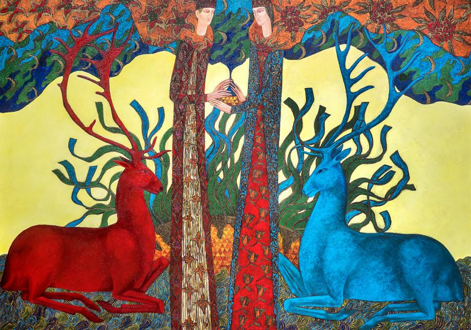 «Кўргазманинг «Аркадия ҳақидаги орзулар» номи қадимги юнон мифологиясида алоҳида ўрин эгаллаган ва «Олтин аср» билан боғлиқ бўлган афсонавий Аркадия мамлакати билан боғлиқ, — деб тушунтиради кўргазма концепциясини унинг ташкилотчиси, дубайлик галереяшунос Наталья Андакулова. – Рассом картиналари – сеҳрли флора ва фантастик ҳайвонлар орасида афсонавий саёҳатчилар пайдо бўладиган сирли ва ажойиб ўрмондир. Йўқолиб кетган антик даврнинг аллегорик ҳайкаллари нафақат орзу ва иллюзияларни, балки қадимги рамзлар ва афсоналар ҳамон инсон тасаввурида ҳукмронлик қилаётганини эслатади».