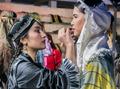 Аёллар чопонлари бироз бошқача бичимга эга — кўпроқ баданга ёпишган ва енглари калта. Анъанавий мато нақшларининг рамзийлиги қадимги даврлардан то ҳозирги кунгача ўзгаришсиз қолган. Масалан, анорлар ёшлик, унумдорлик, мўл-кўлчилик ва оилавий фаровонликни англатади. Қалампир нашқлари эса ёмон кўз ва назардан асрайдиган тумор ҳисобланади.