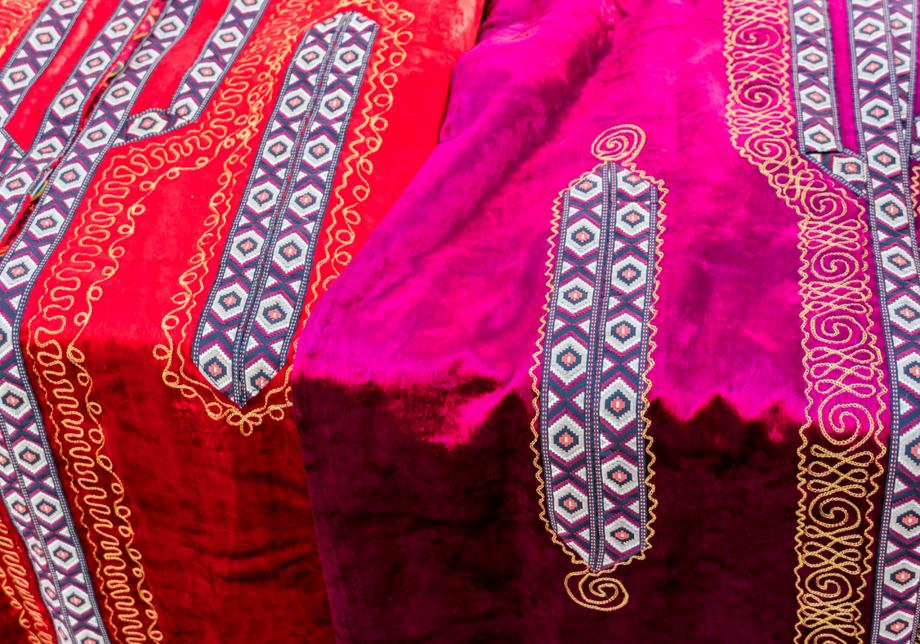Аёллар чопонлари бироз бошқача бичимга эга — кўпроқ баданга ёпишган ва енглари калта. Анъанавий мато нақшларининг рамзийлиги қадимги даврлардан то ҳозирги кунгача ўзгаришсиз қолган. Масалан, анорлар ёшлик, унумдорлик, мўл-кўлчилик ва оилавий фаровонликни англатади. Қалампир нашқлари эса ёмон кўз ва назардан асрайдиган тумор ҳисобланади.
