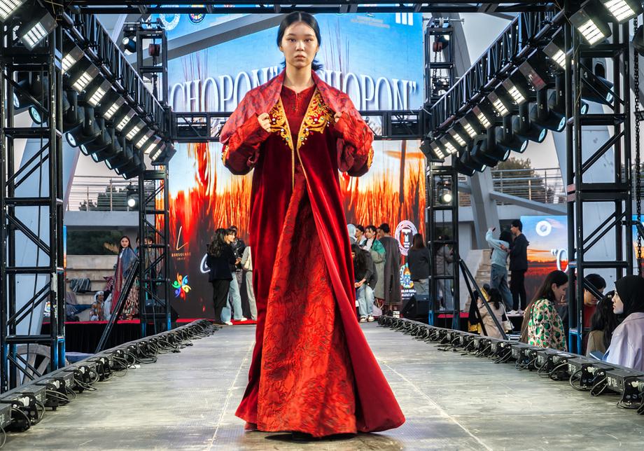 Очиқ ҳаводаги подиумда турли хил либос услублари намойиш этилди, улар орасида анъанавий ўзбек чопони тарихий меросни замонавий дизайн тенденциялари билан уйғунлаштирган ўзига хос услубларнинг асосий элементи сифатида намойиш этилди. Мода намойиши халқ ритмлари, жўшқин DJ- сети ва эстрада хонандаларининг чиқишлари ҳамроҳлигида ўтказилди.